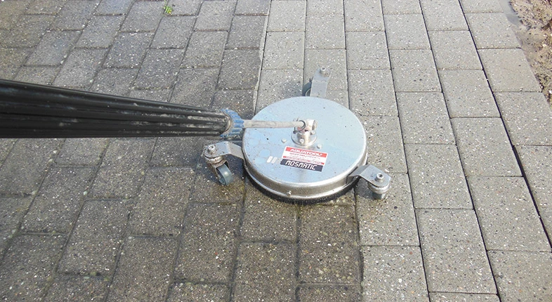 Professionel behandling der fjerner alger og snavs fra fliser.